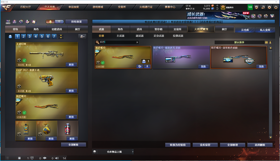蝴蝶刀冠军炽芒皮肤+觉醒王者幻神70V可排位荣耀枪COP雷霆王者全套竞技荣光套云悠悠传说光耀王者白虎