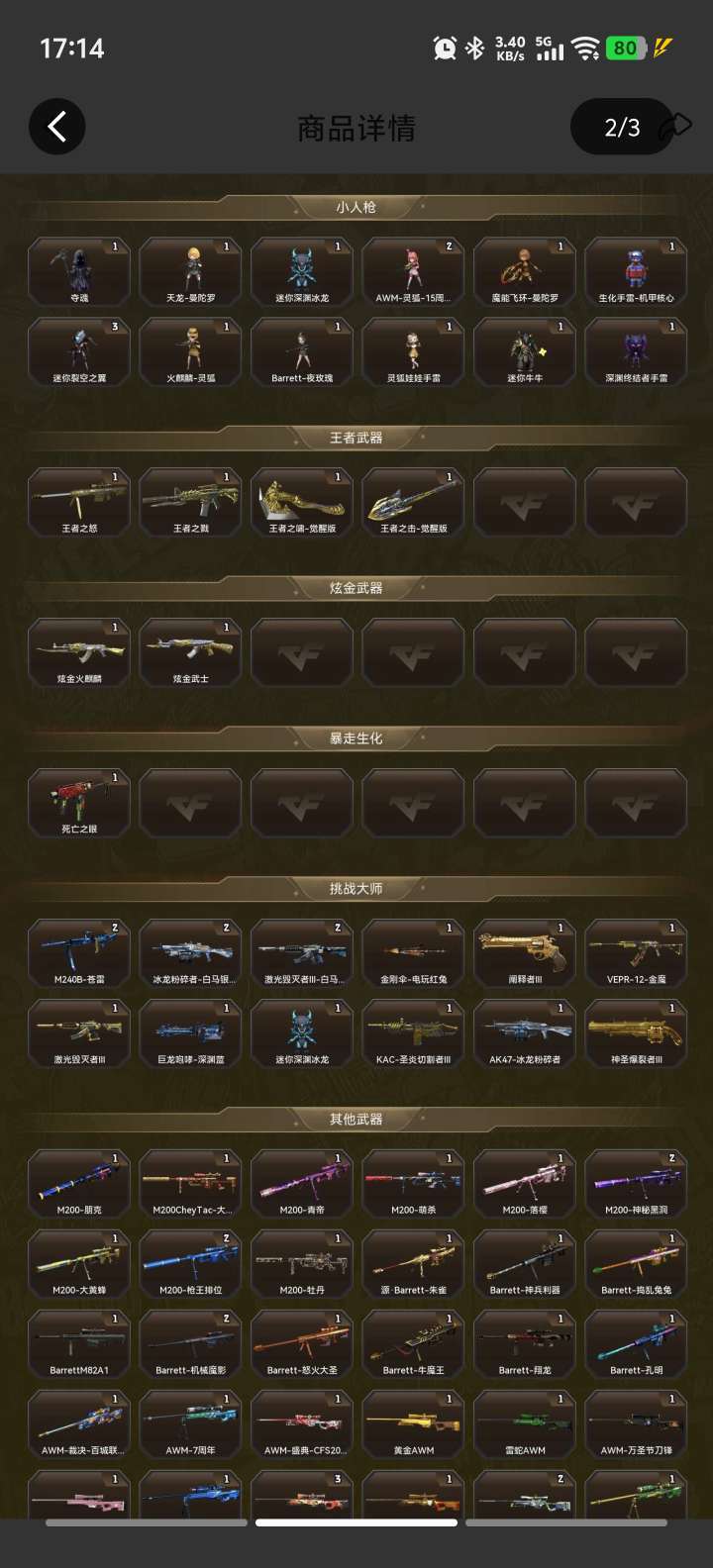 装备描述:毁号,涉及毁坏虚拟财产罪及计算机安全罪,请文明游戏素质游戏,让我们共建美好租号平台 本游戏账号:英雄武器27个 王者武器7个。 装备不多,但是主武器、副武器、近身武器够用 拥有完美游戏体验。重要的是特殊装备有:AK47-火麒麟、HK417-朱雀、M200-幻神、加特林-炼狱、麒麟刺、黑骑士-海王、炫金武士、炫金火麒麟、王者之怒、王者之戮、堕天使、职业选手、迷迭香、魅影、生化弹匣、等,随意畅选。 注意事项: A.游戏过程中请不要恶意挂机或者不文明发言 B.恶意挂机、顶号等行为将被拉黑无法再次下单 C.进入游戏后中途请勿退出登陆,否则无法再次上号 D.部分账号由于异地登录可能会出现密码错误提示,通常再尝试5-6次后可上号 喜欢本账号请点 ☆收藏☆ 方便下次租用,谢谢光临惠顾