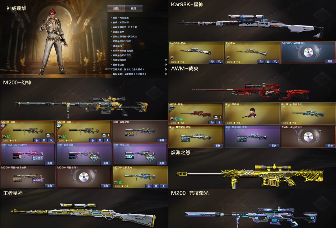 神威莲华4防✅幻神6皮宠儿音效+星神裁决白虎QBZ幻影朱雀三件套✅炽渊5满副3炽芒✅炼狱6盘蝴蝶6烈