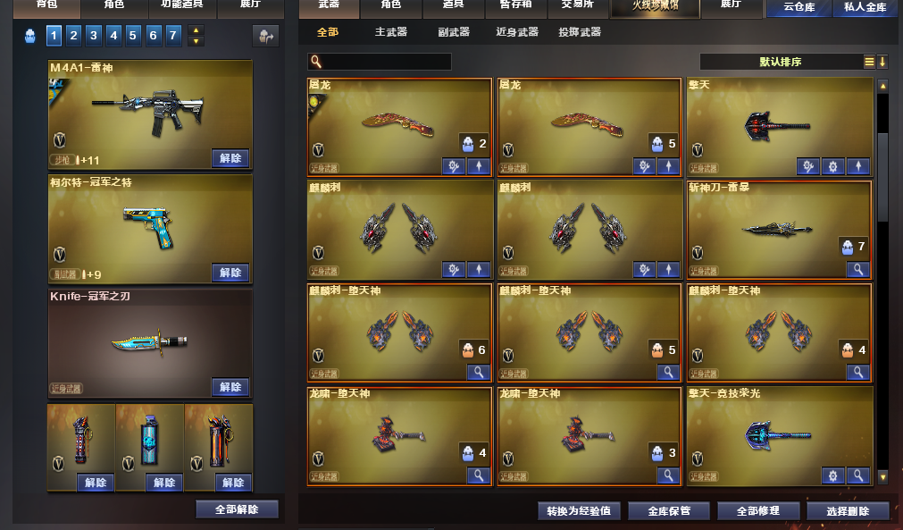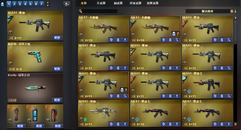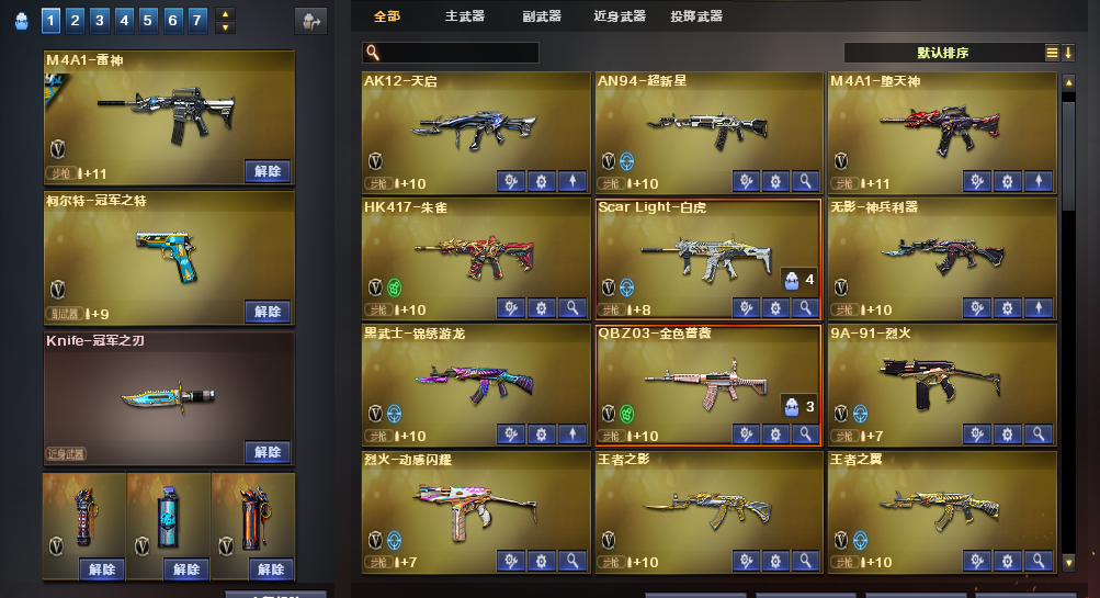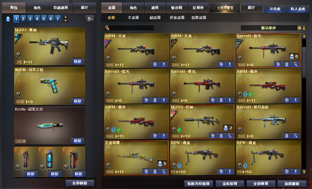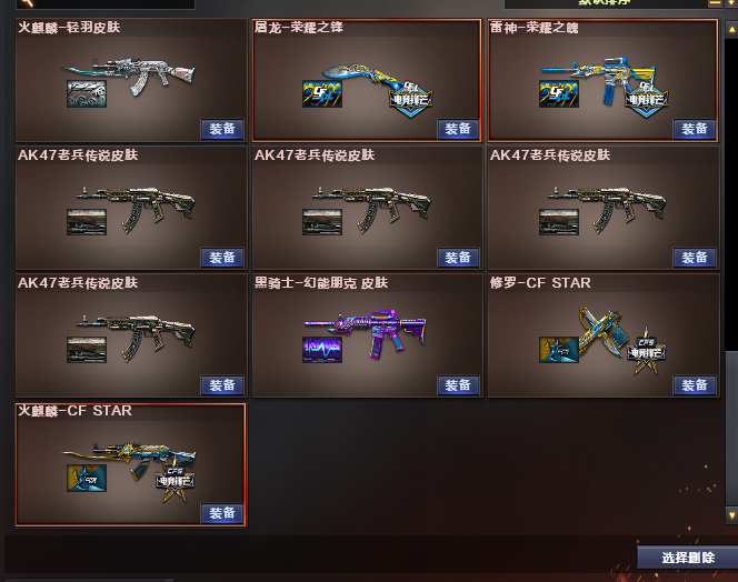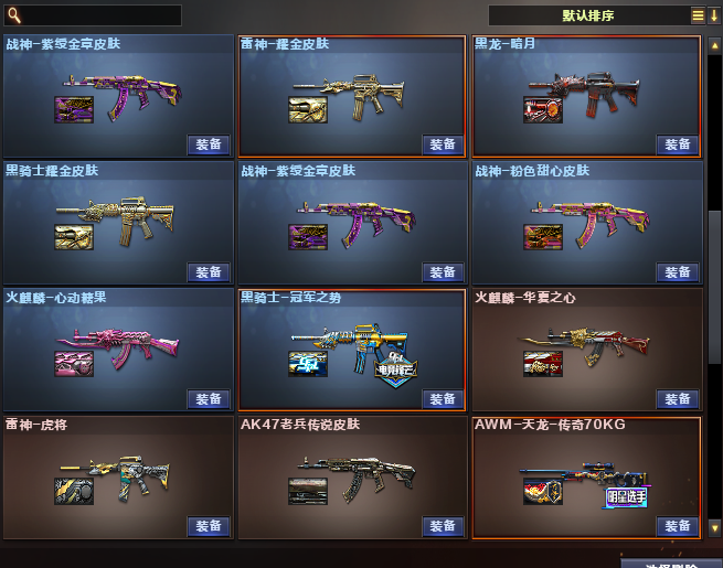 装备描述:道具:步枪弹匣;烟雾保护头盔;闪光护目镜;天使之翼;闪光护目镜;防弹衣;烟雾保护头盔;C4工具钳;手雷包;防弹头盔;AK47-火麒麟绿色光效;运动护目镜;防弹头盔;C4工具钳;手雷包;防弹衣;C4工具钳;手雷包;炫彩背包;王者之魄金色光效;C4工具钳;闪光护目镜;超级背包;M4A1-雷神蓝粉色光效;防弹头盔;防弹衣;屠龙-动感闪耀 音效卡;QBZ03-金色蔷薇音效卡;M4A1-黑骑士音效卡;M4A1-雷神音效卡;Barrett-毁灭音效卡王者武器:王者星霆;王者之翼-觉醒版;王者之幻-觉醒版;王者之影-觉醒版;王者之魄-觉醒版;炫金骑士;王者之势-觉醒版;炫金雷神;炫金天龙;炫金超新星;炫金武士英雄武器:AK12-天启;黑武士-锦绣游龙;烈火-动感闪耀;屠龙-动感闪耀;天神-动感闪耀;手雷-动感闪耀;无影-神兵利器;AK47-火麒麟;AK-47-猩红传说;白虎-电玩蓝兔;Barrett-暗月传说;AN94-超新星;柯尔特-冠军之特;USP-雷暴;烟雾弹-竞技荣光;擎天-竞技荣光;高爆手雷-竞技荣光;闪光弹-竞技荣光;柯尔特-竞技荣光;HK417-朱雀;QBZ03-金色蔷薇;