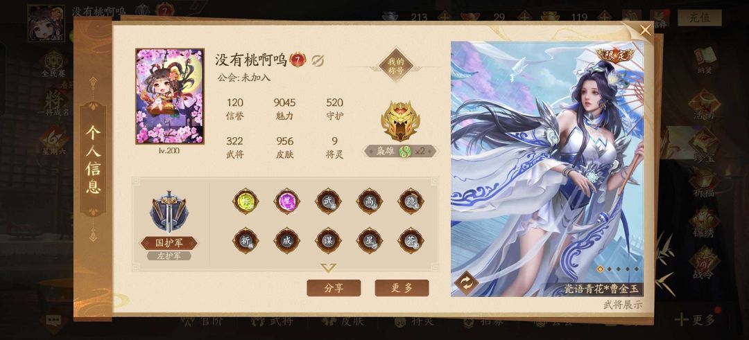 装备描述:大梦仙尊 管宁 神张 张璇 许劭 金鱼 孙令銮等阴间武将将灵 年兽 鲜花多 信誉120 可排位