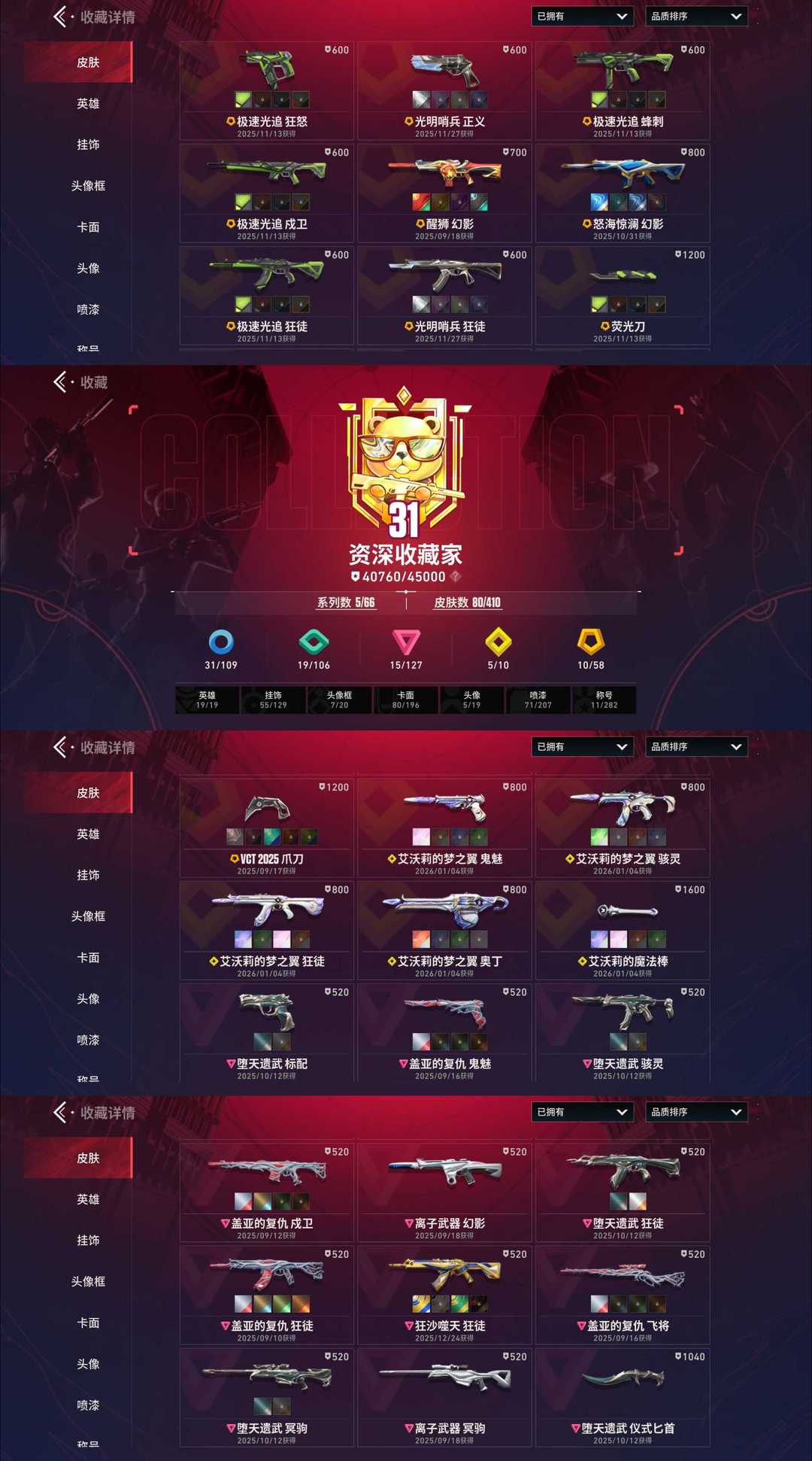 日租特惠❤️31级收藏❤️6狂徒5幻影❤️猫猫套❤️幻影狂徒全满❤️7刀皮全满❤️皮肤以图为准
