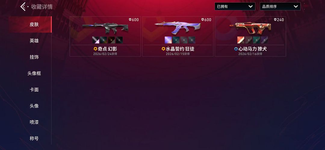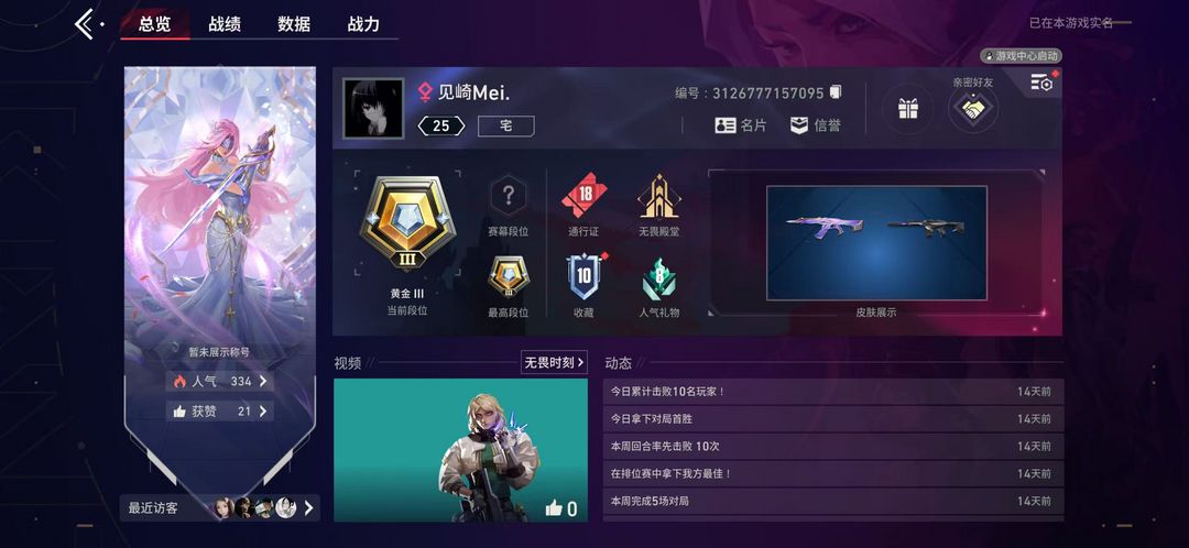 限制: 租号30次及以上 | 撤单率<40%才可租用此帐号装备描述:-枪皮数量3(绝版0传奇2终极0卓越0); 【枪皮】:狂徒-水晶誓约,幻影-奇点,戍卫-涂鸦艺廊,獠犬-心动马力,标配-琉璃幻梦;【热门卡面】:神鹰武器卡面;【热门挂饰】:粉色恋人挂饰;详情看图【】