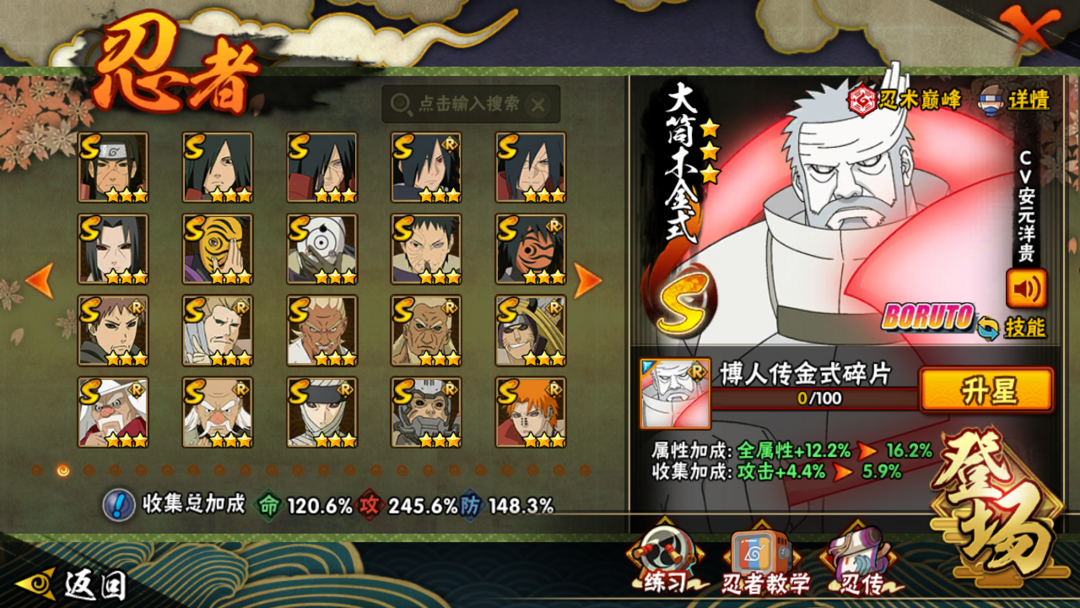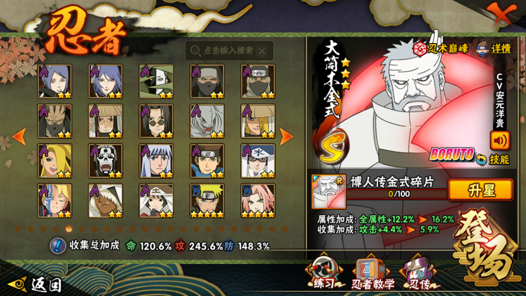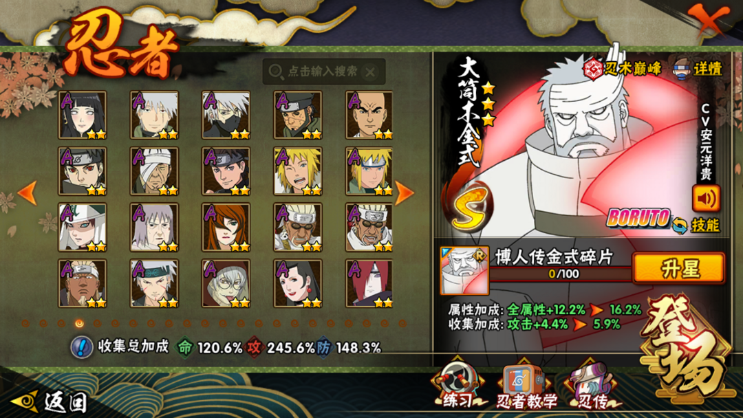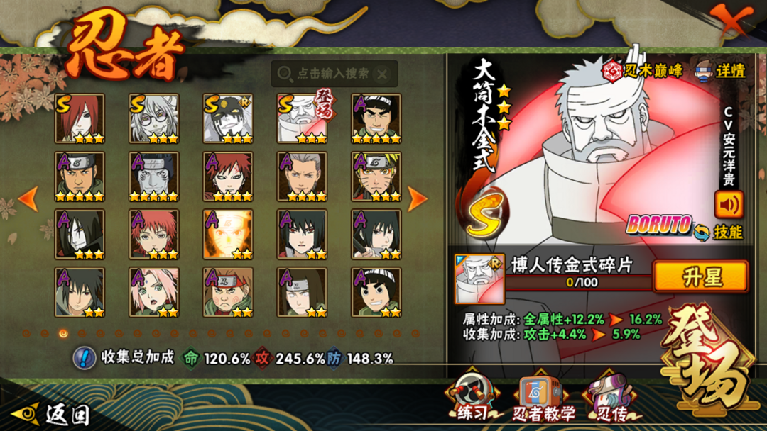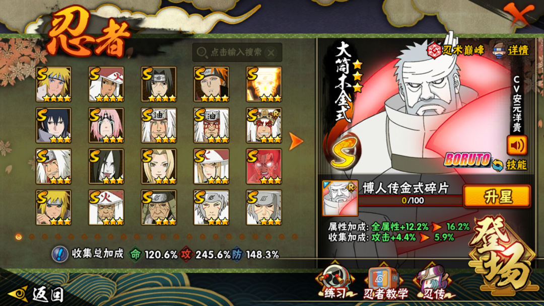 半藏⭐大蛇丸⭐三代风影⭐猿飞日斩⭐九喇嘛⭐柱间⭐44S⭐IOS⭐54A⭐V12⭐1290W战力