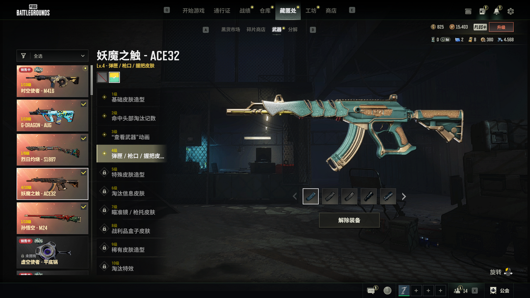 保时捷跑车√异色妖魔之触4级√时空使者M416√悟空M24√权志龙AUG√白熊爪√丸子头√新娘头√