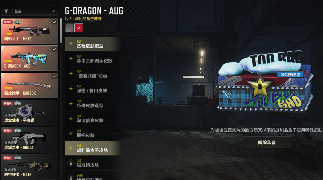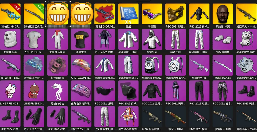 ⑧G-DRAGON异色AUG✅③猛虎98K①暗影之主MK12✅双马尾彩色烟雾烟枪✅白运动白熊套✅可排