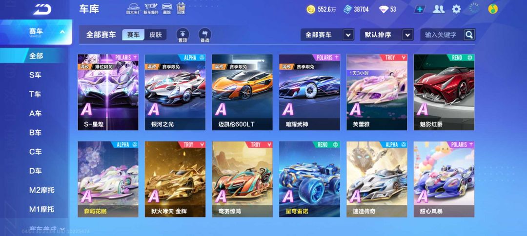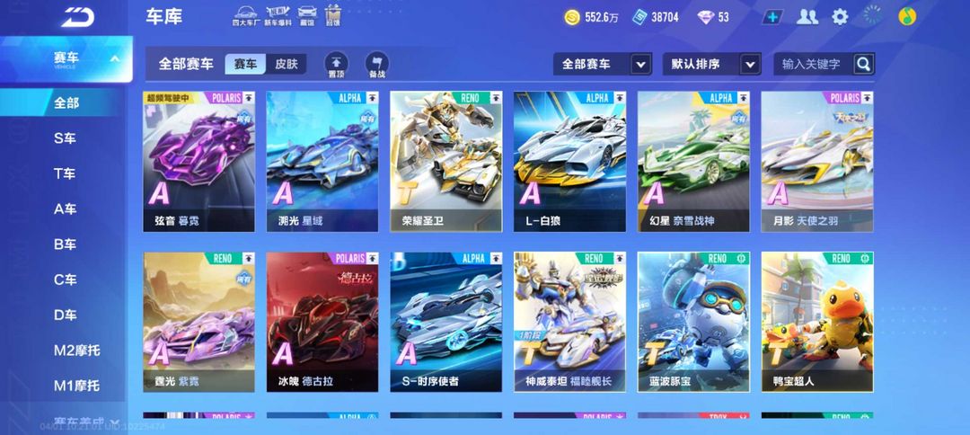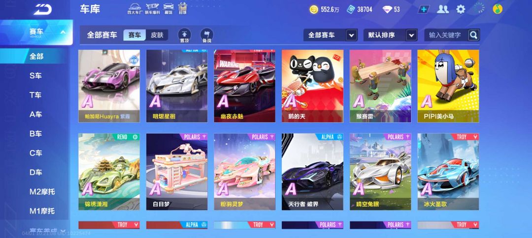 有两个t车还有几款联赛车还有个性化和几款宠物