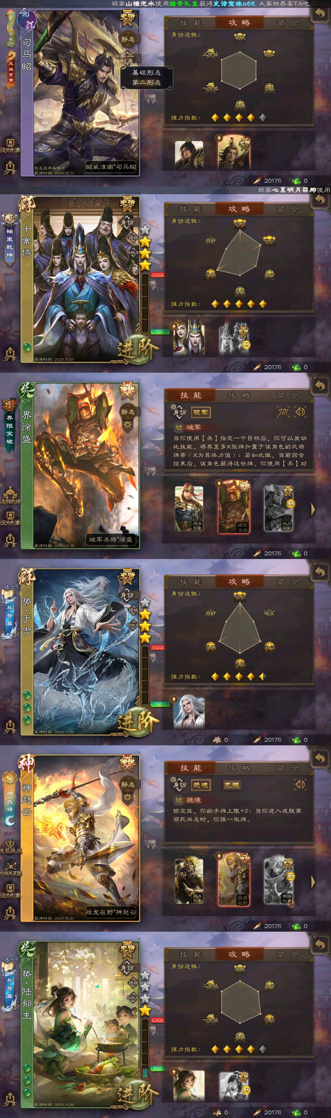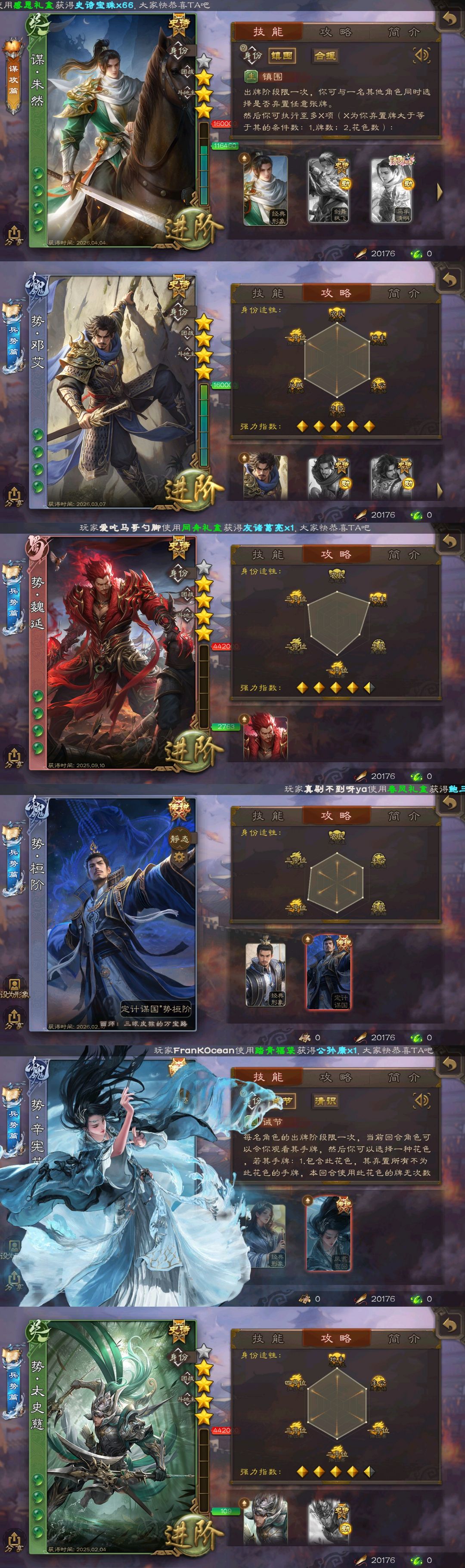有卡三卡✨谋朱然✨势邓艾✨势魏延✨势桓阶✨回廊势辛宪英✨新能源势于吉陆郁生✨十常侍大宝神赵云新司马
