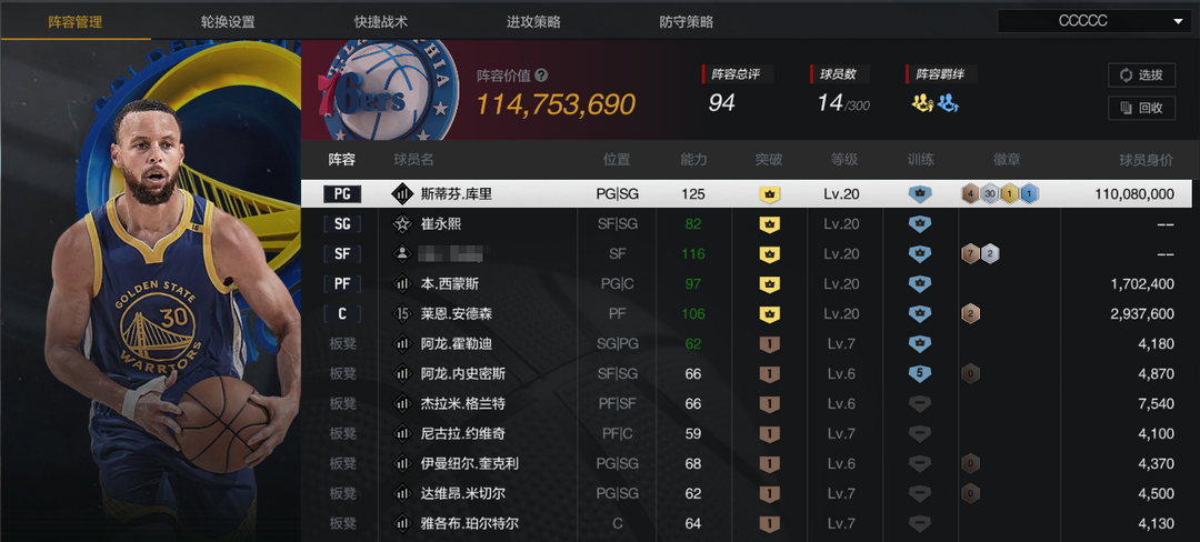 角色名:36.5 库里阵容
