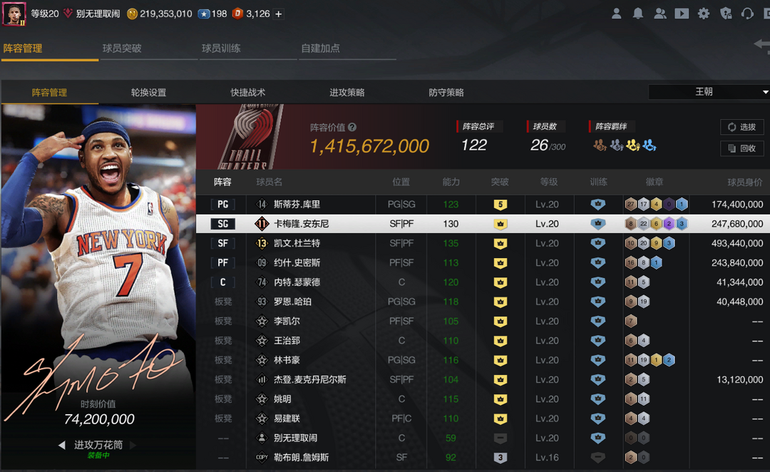 15E~10突双时刻安东尼+10突双时刻杜兰特+10突鹰王+5库里带队三模式畅玩,可排位,超多时装!